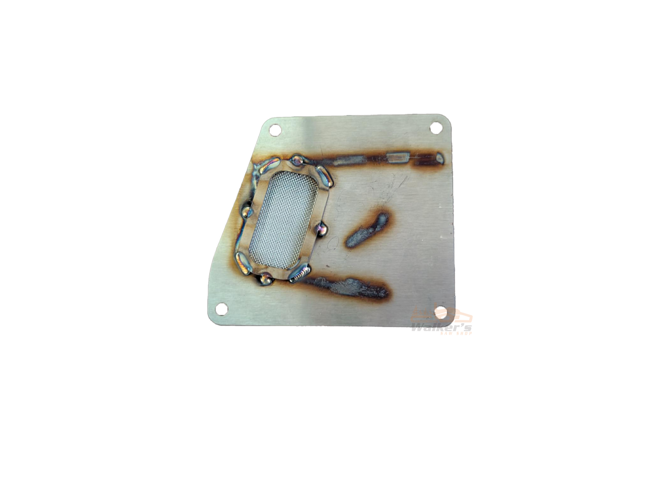 This muffler cover is constructed out of stainless steel and hand TIG welded. It also has a spark arrester built in.