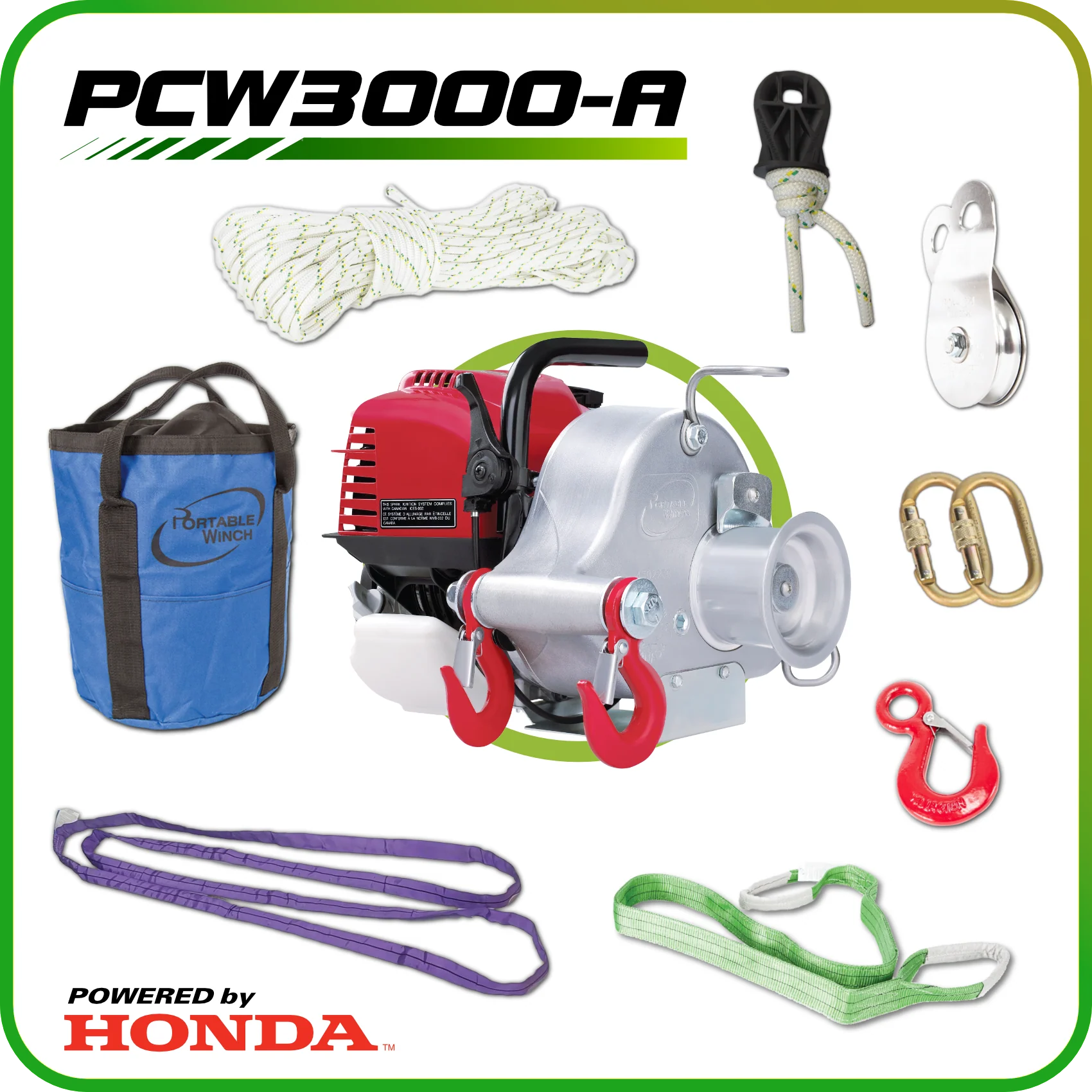 Features the GX35 engine by Honda, an all-position engine. This winch delivers incredible pulling power in the smallest format designed by Portable Winch Co.