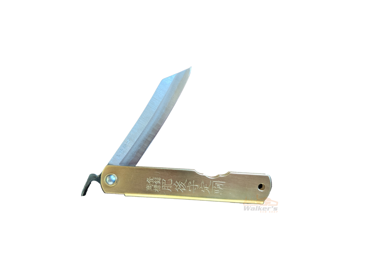 The Blue Paper Steel HIGO Knife (100mm) by Gyokucho is a high-quality knife designed for professional and hobbyist woodworkers. It features a 100mm blade made of Blue Paper Steel (or Aogami steel), known for its sharpness, edge retention and easy sharpening. The handle is made of brass, providing a comfortable grip and excellent control. The knife is designed with a traditional Japanese style, making it a versatile tool for a variety of woodworking and wilderness tasks. The knife is perfect for professional woodworkers, carpenters, and anyone who demands precision and reliability in their cutting tools.